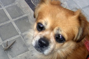 Rinty, es de esos animales, que te asombran por su forma de ser tan peculiar. Para las cuestiones personales de satisfacción propia, hay que verlo, el solo se basta para esos menesteres. Coloca sus manitas delanteras y comienza su danza particular. Siempre esta atento a mi llegada, a la que celebra con su ladrido de contento, y insistente, como si te estuviera “broncando” por tardar tanto en llegar. Cuando esta con sus amiguitas, normalmente de mayor tamaño que el, empiezan un ceremonial amoroso de lo más dispar y divertido, solo hay que verlo a el, tan pequeño y saltando, supongo que por su corta estatura hará lo imposible. Cuando yo me voy a trabajar, el busca a el abuelo, o se va con mi hermana, ya que es un perro que no le gusta nada estar solo. El problema esta cuando he de hacer un largo viaje, en el que no puedes llevarte contigo al Rinty, este se deprime mucho, ya que es muy aprensivo.